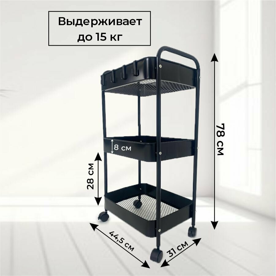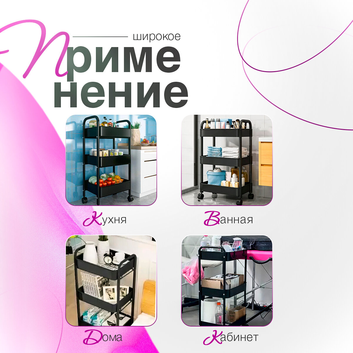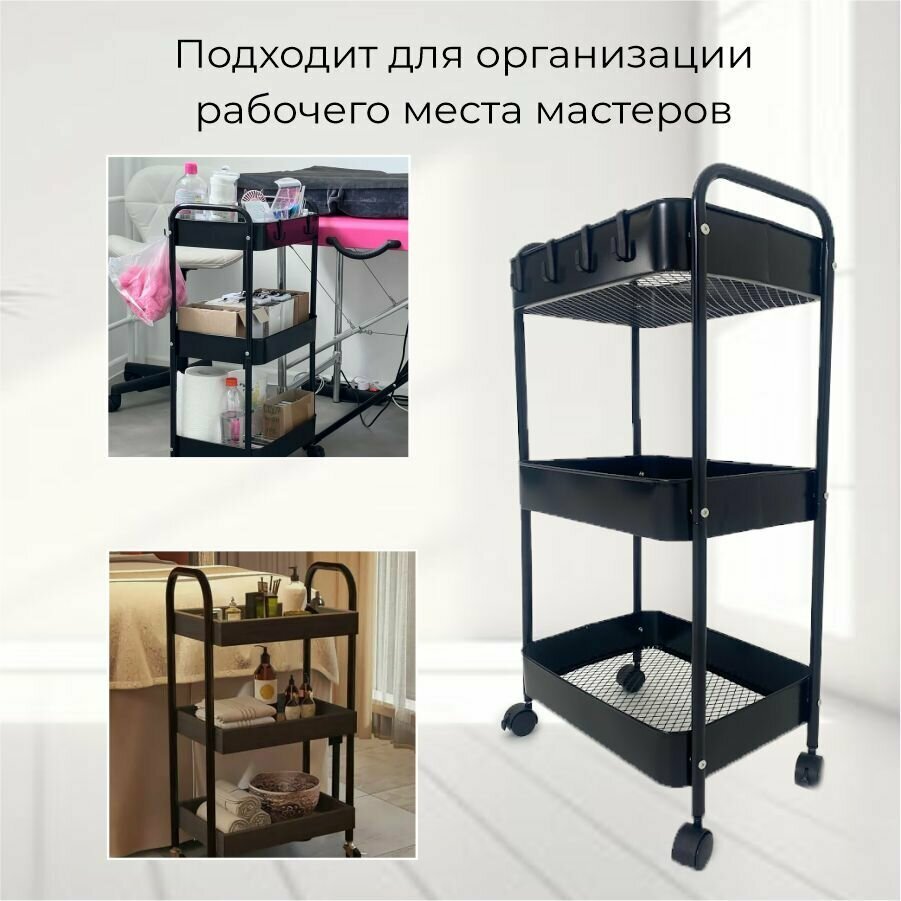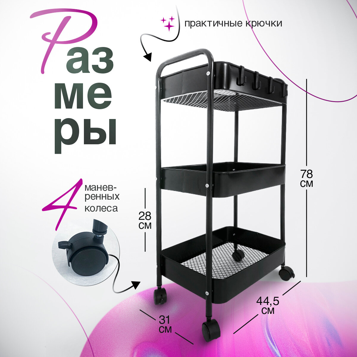 Тележка косметологическая. Этажерка органайзер на колёсиках. LR707 80х40х30 см Черная интересное: