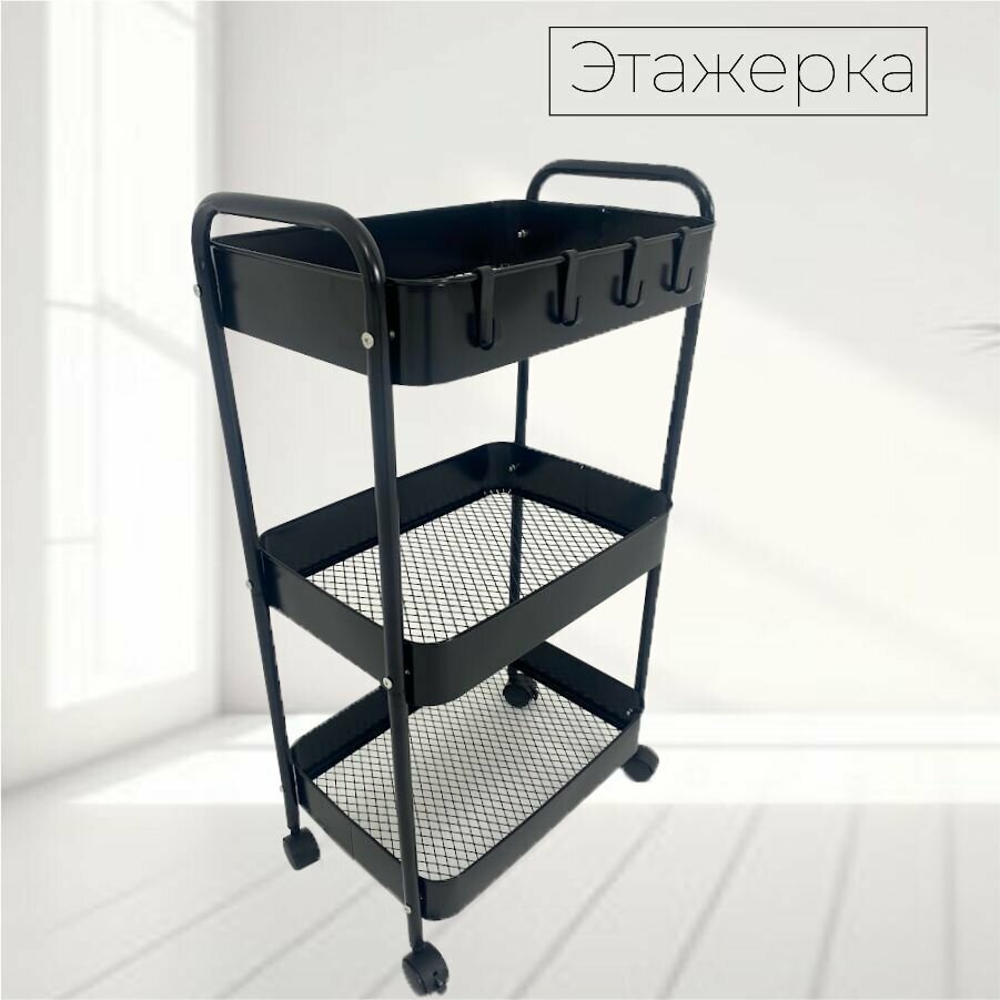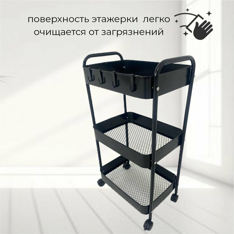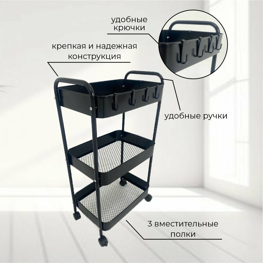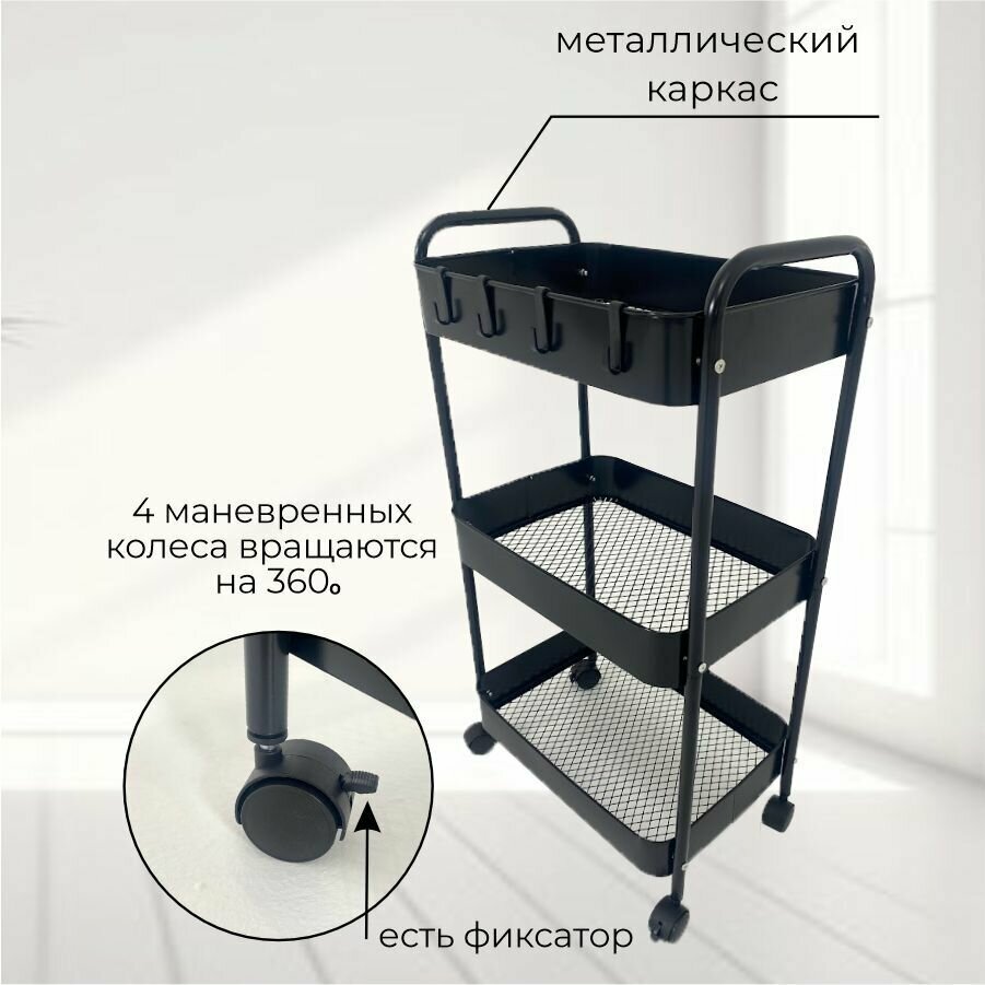 Тележка косметологическая. Этажерка органайзер на колёсиках. LR707 80х40х30 см Черная интересное:
