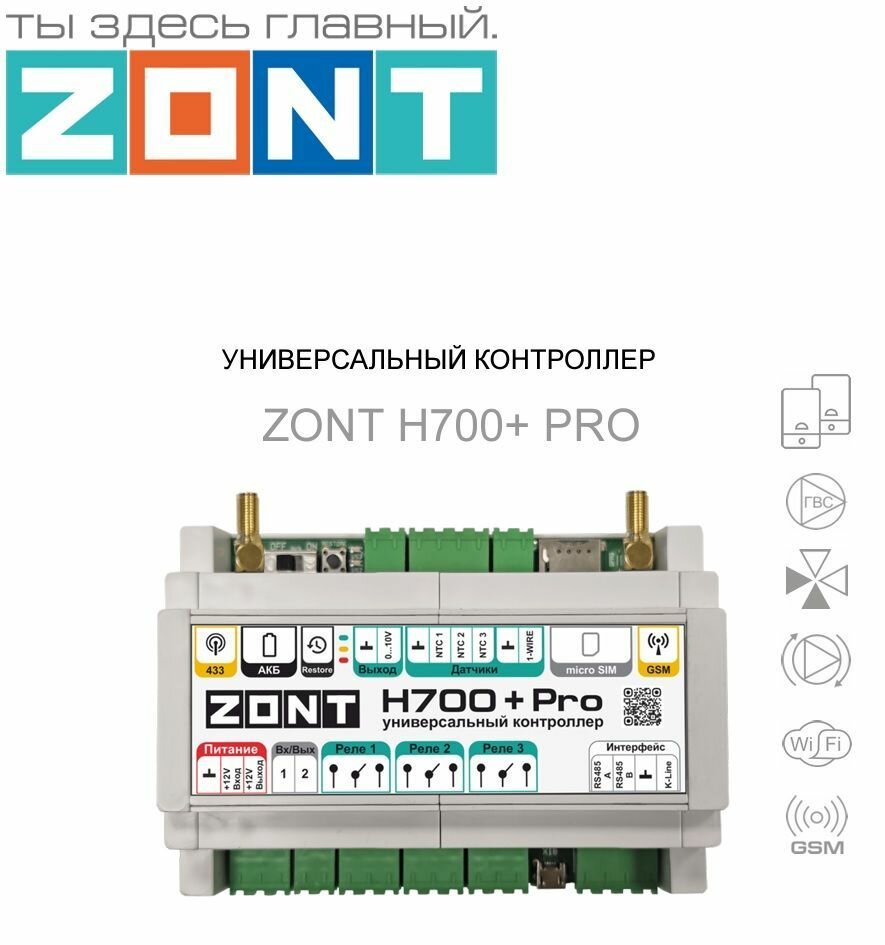 Универсальный GSM / Wi-Fi контроллер ZONT H700+ Pro Zont