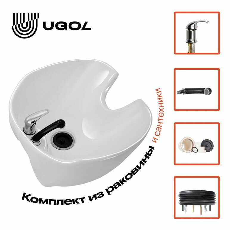 UGOL / Встраиваемая парикмахерская мойка с комплектующими, керамическая, белая интересное: