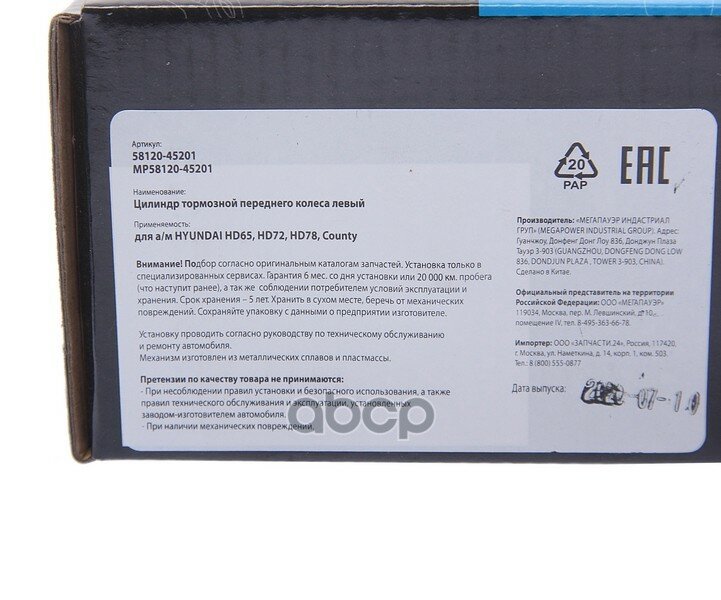 Цилиндр Тормозной Передний Хенде/Хендай/Hyundai Hd65,72,78,County Левый Megapower MEGAPOWER Automotive арт. 350-35-023 интересное: