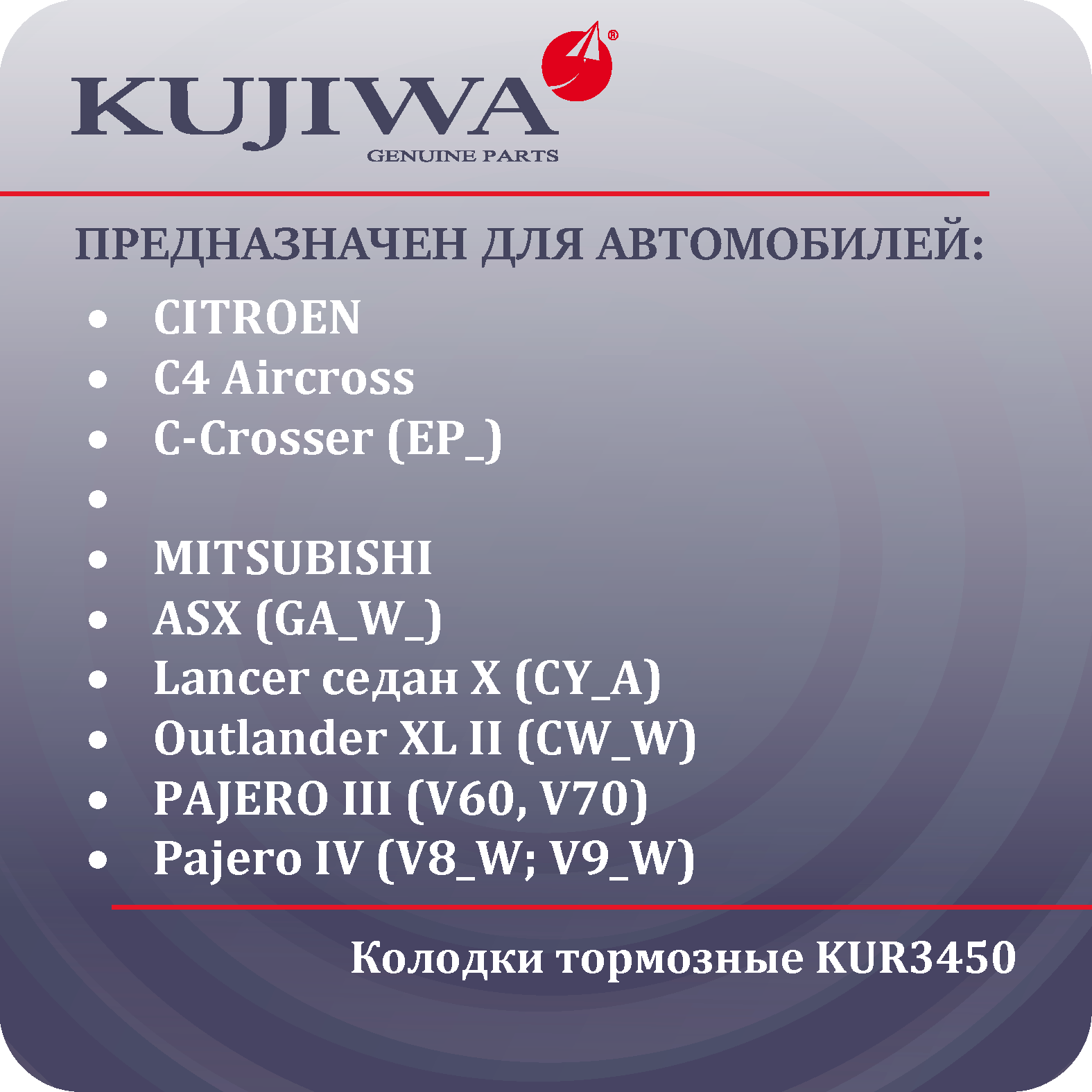 Тормозные колодки KUR3450 KUJIWA Mitsubishi ASX / Outlander II / Pajero II-IV; Citroen C4 Aircross; задние MN102628 интересное: