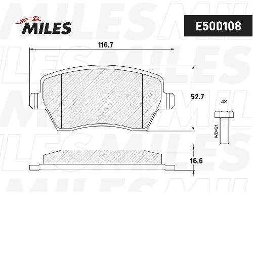 Купить Колодки Тормозные Lada Largus/Nissan Note/Duster/Kangoo/Kaptur Перед.ceramic Miles арт. E500108