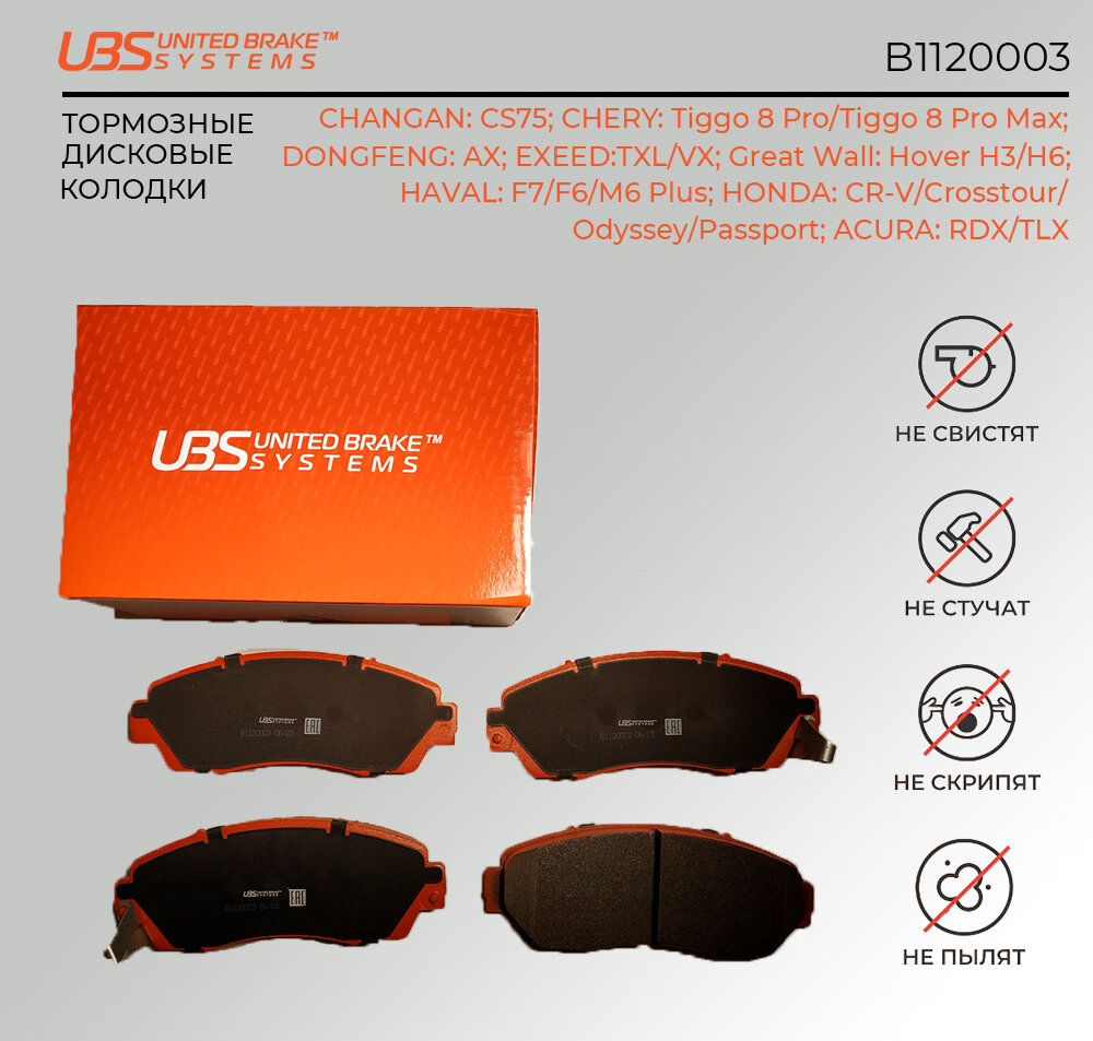 UBS B1120003 Тормозные колодки для HAVAL F7 / F7x / EXEED TXL передние, в комплекте со смазкой (5г) интересное: