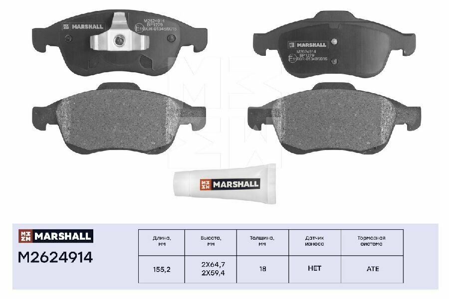 Купить Тормозные колодки передние дисковые Marshall M2624914 для a/м Nissan Terrano III 14-, Renault Arkana 19-, Kaptur 13-