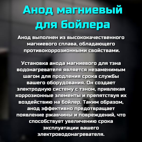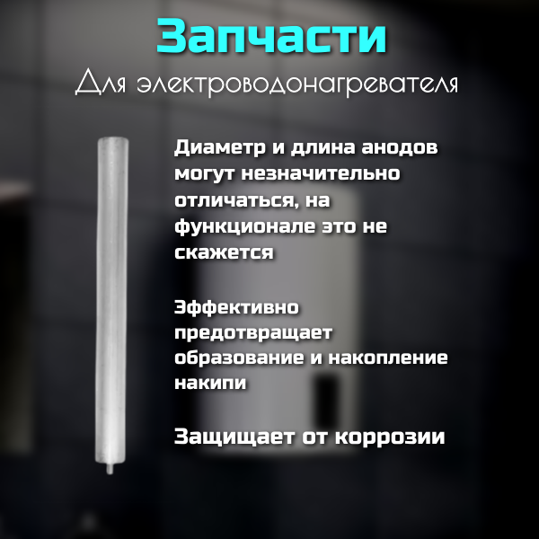 | Дополнительная информация | Длина анода: 260 мм (вместе с резьбой); Диаметр анода: 21 мм |
