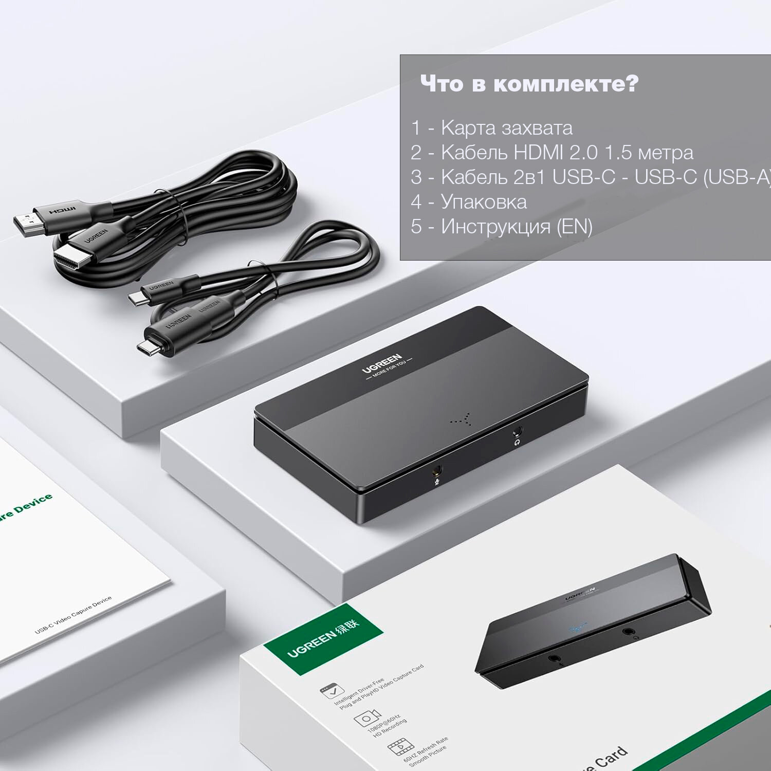 Карта захвата и стриминга UGREEN HD Video Capture Card 4K @ 60 Hz, захват 1080p @ 60 Hz интересное: