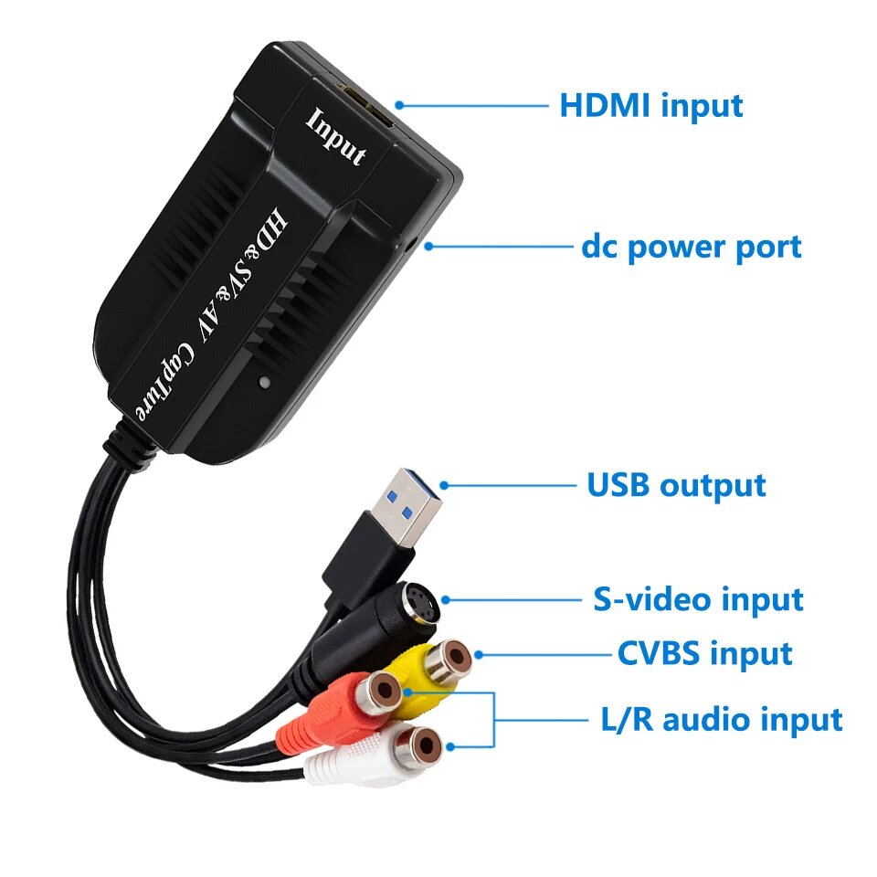 Ниже Вы можете прочитать отзывы на Карта видеозахвата USB2.0 HD/RCA/S-видео в USB-устройство захвата аудио-видео VHS в цифровой преобразователь для Hi8 DVD PS4, Черный, ознакомится с подробными характеристиками, посмотреть интересные обзоры и фотографии на Карта видеозахвата USB2.0 HD/RCA/S-видео в USB-устройство захвата аудио-видео VHS в цифровой преобразователь для Hi8 DVD PS4, Черный.