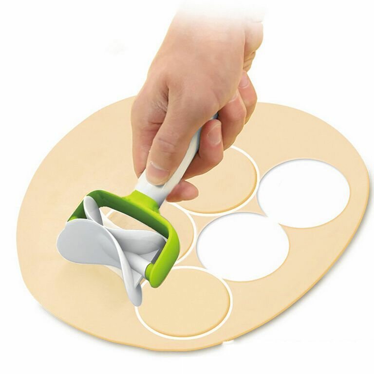 Нож ролик для теста Кружок, диаметр нарезки 7 см. цвет белый зелёный / Ролик для теста круглый интересное:
