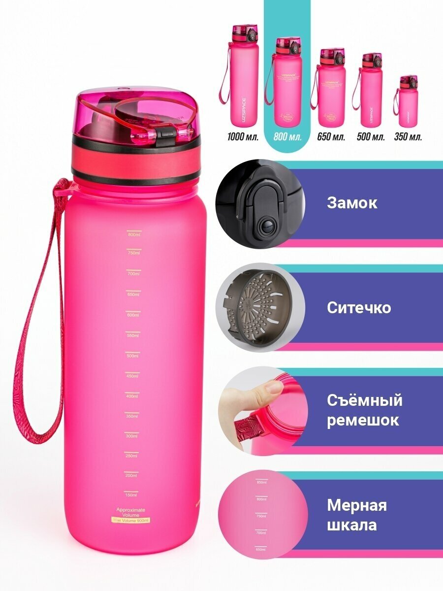 Бутылка для воды спортивная 800 мл UZSPACE розовый интересное: