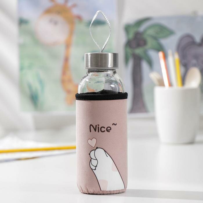Бутылка для воды стеклянная в чехле «Лапки», 300 мл, h=17 см, цвет микс интересное: