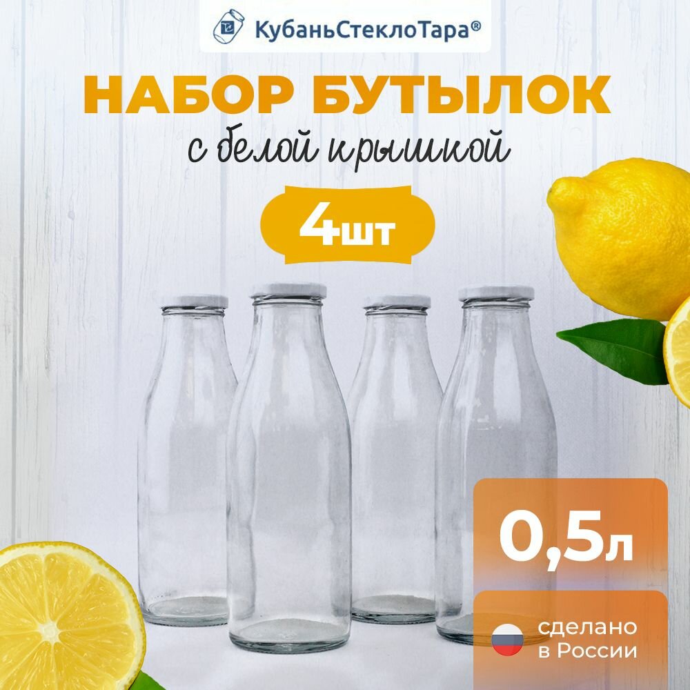 Купить Бутылка стеклянная 500 мл. Для подарка, для творчества, для напитков, сока, алкоголя. Комплект с пробками 4 шт.