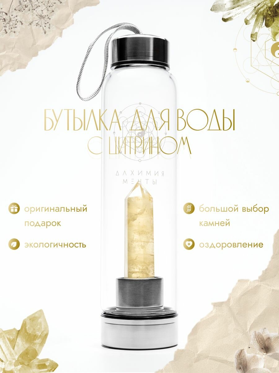 Спортивная питьевая экобутылка для воды женская/ мужская стекло. Цитрин интересное: