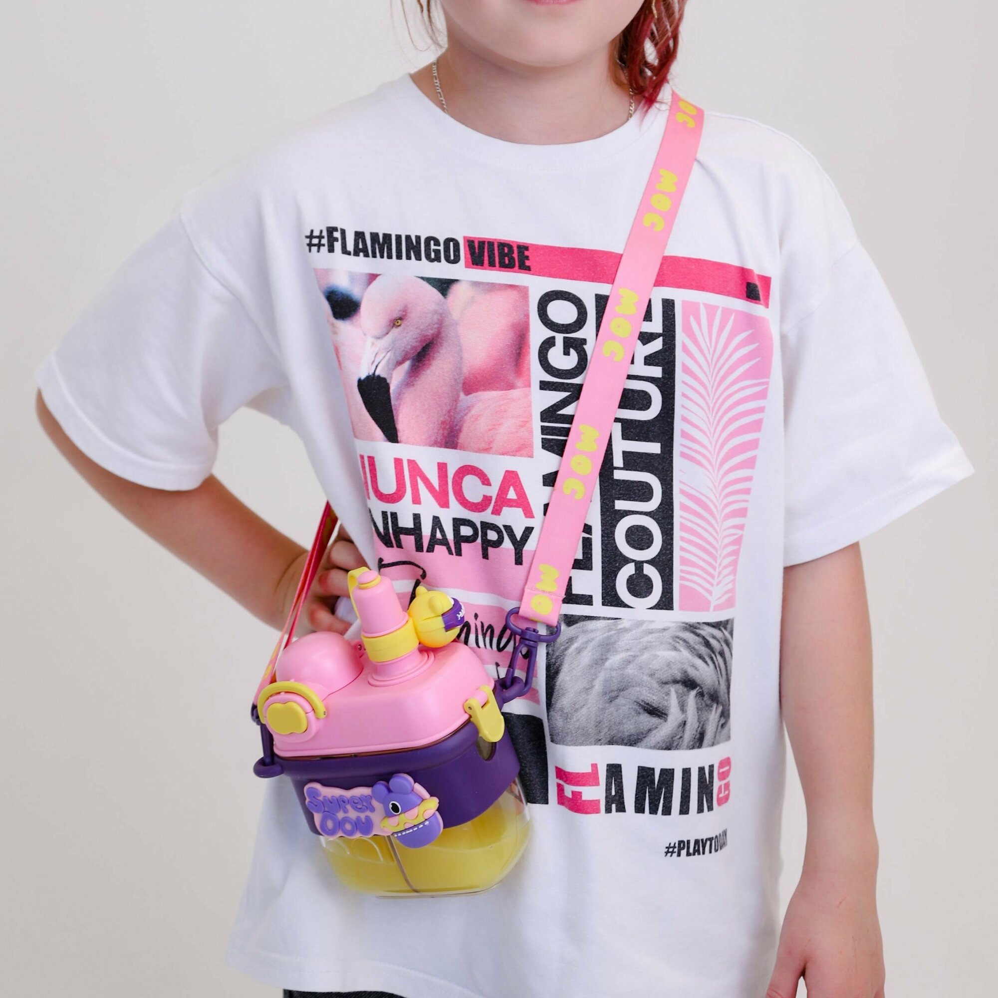 Купить Бутылка для воды детская, с ремешком через плечо, 500 мл, розовая
