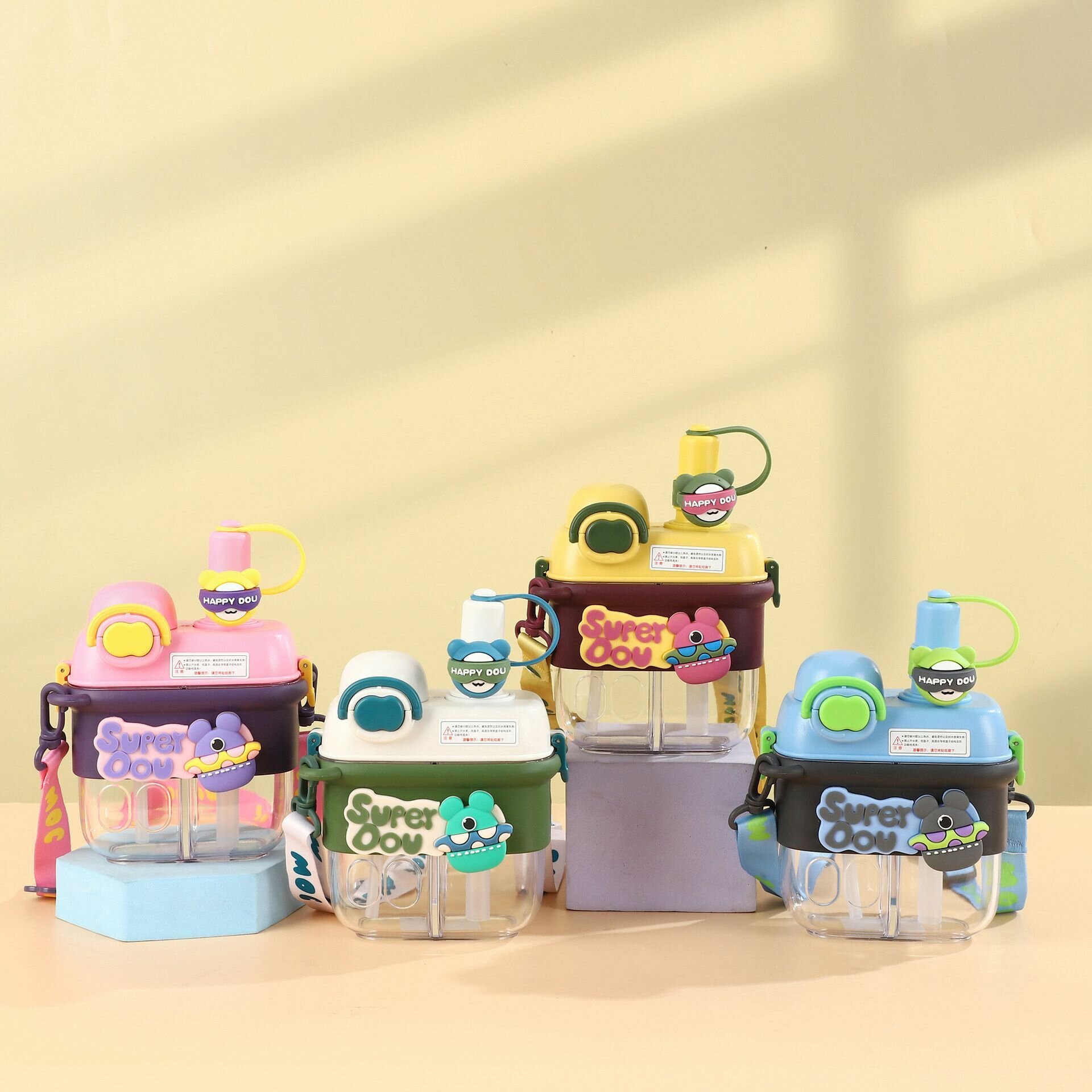 Бутылка для воды детская, с ремешком через плечо, 800 мл, жёлтая