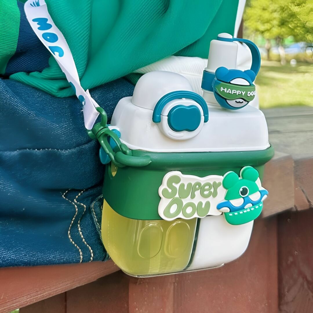 Бутылка для воды детская, с ремешком через плечо, 500 мл, зелёный интересное:
