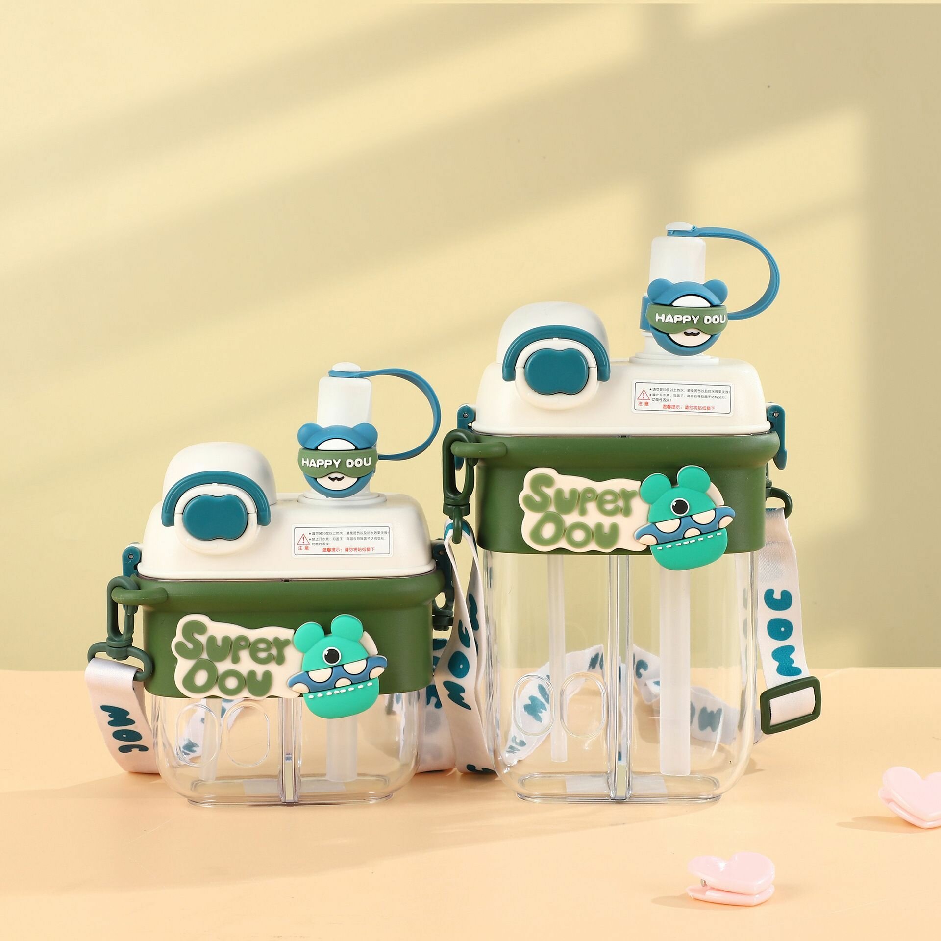 Купить Бутылка для воды детская, с ремешком через плечо, 500 мл, зелёный