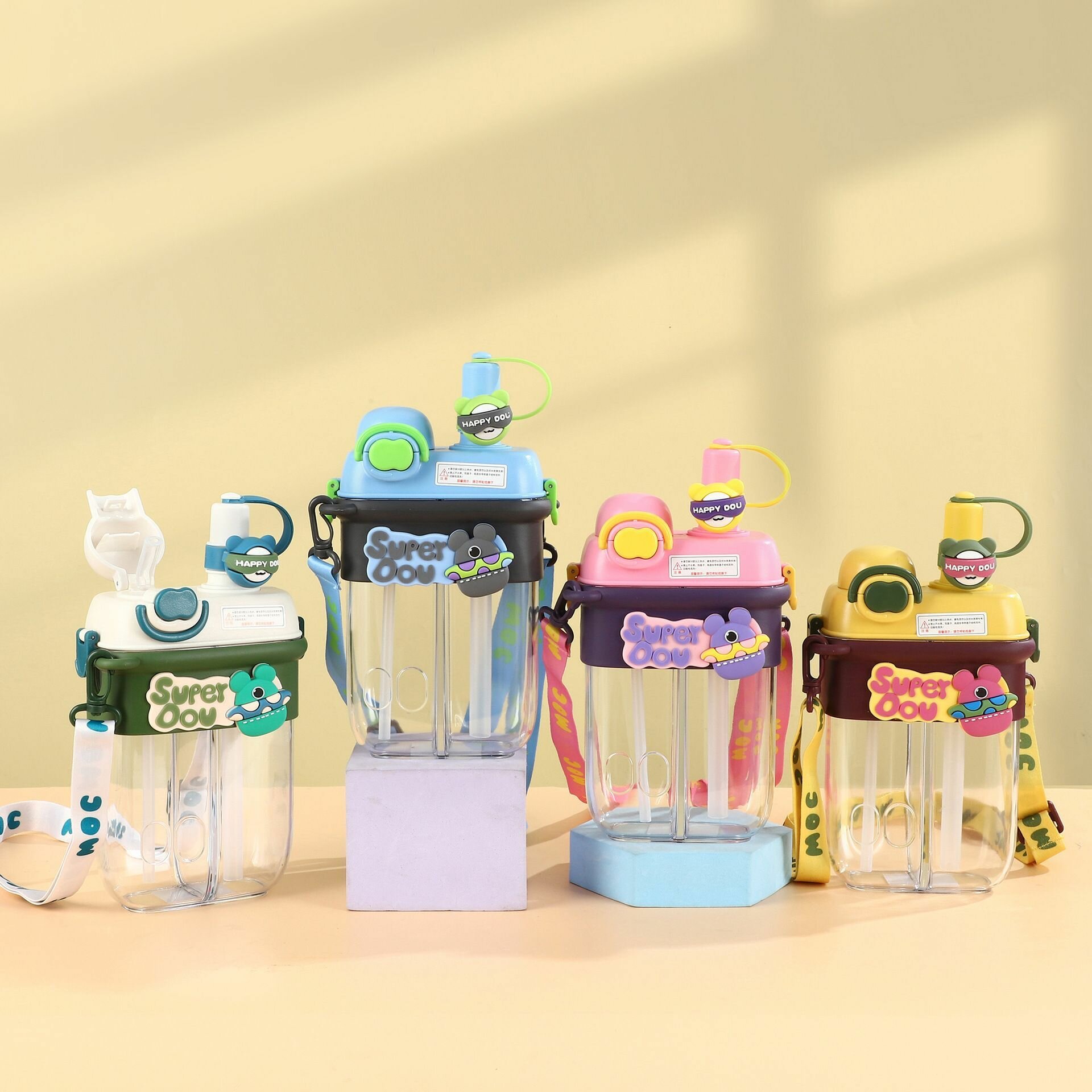 Купить Бутылка для воды детская, с ремешком через плечо, 800 мл, жёлтая