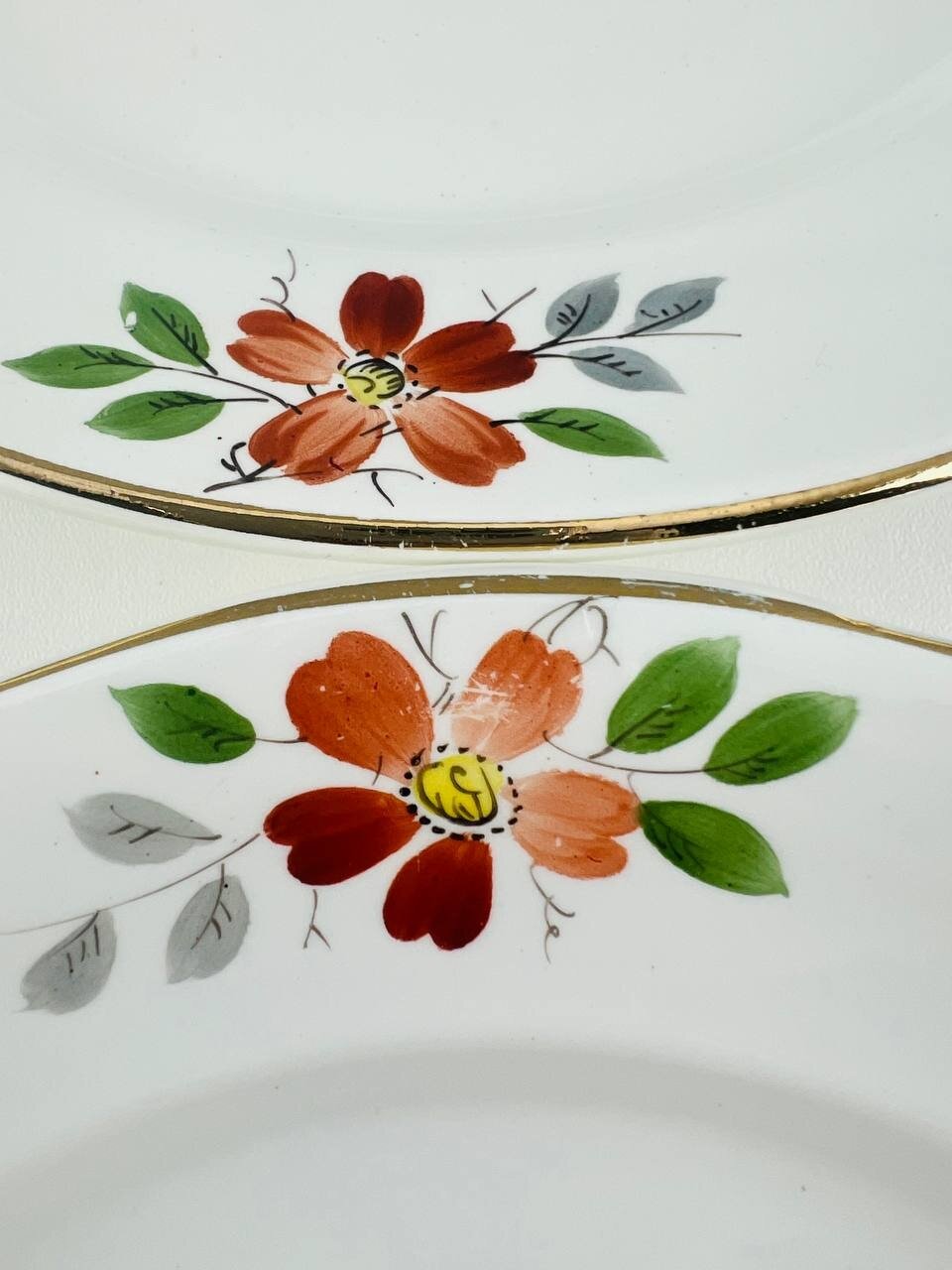 Винтажный набор тарелок "Цветочное трио". Фарфор ЗиК Конаково. СССР, 1940-е. интересное: