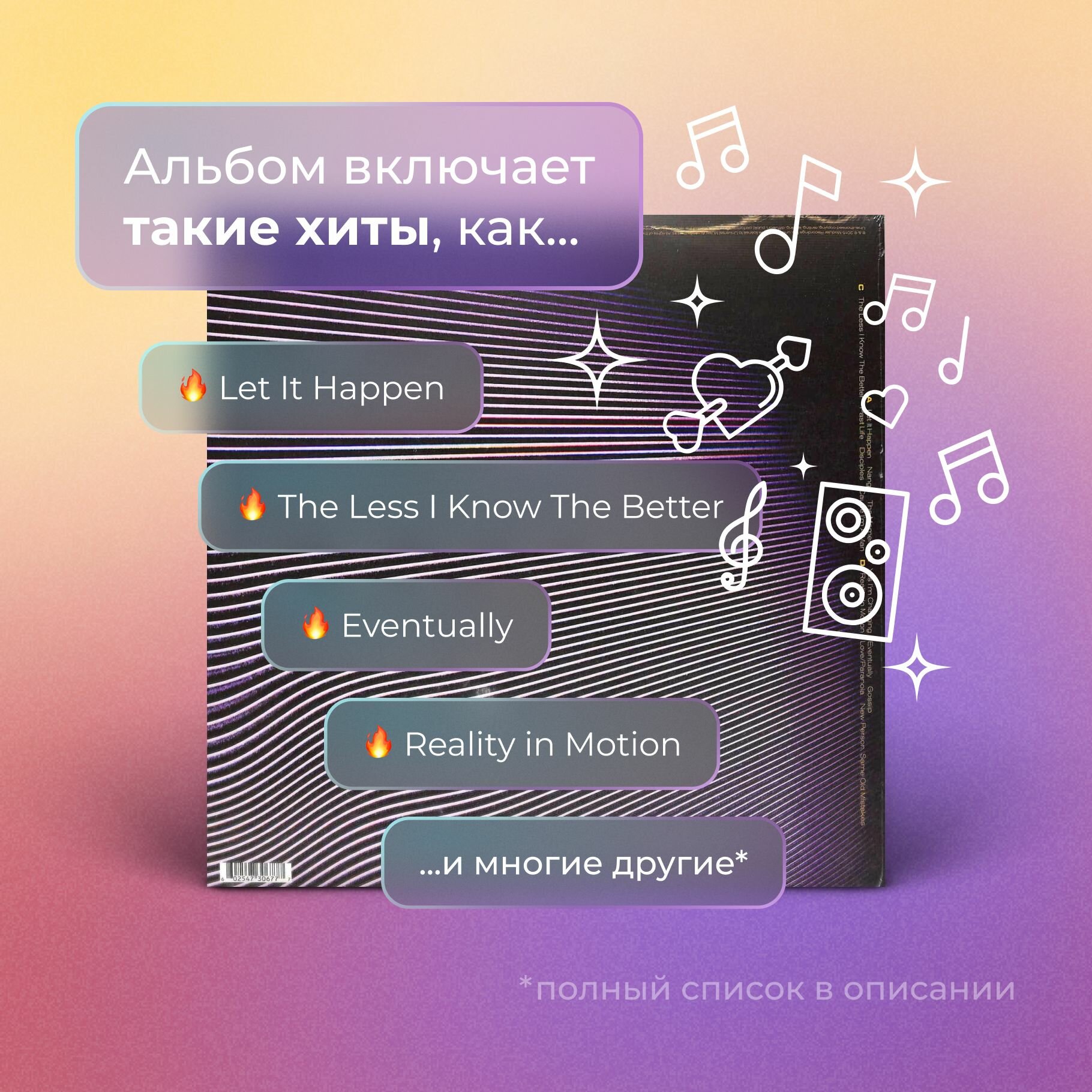 Ниже Вы можете прочитать отзывы на Tame Impala – Currents, ознакомится с подробными характеристиками, посмотреть интересные обзоры и фотографии на Tame Impala – Currents.