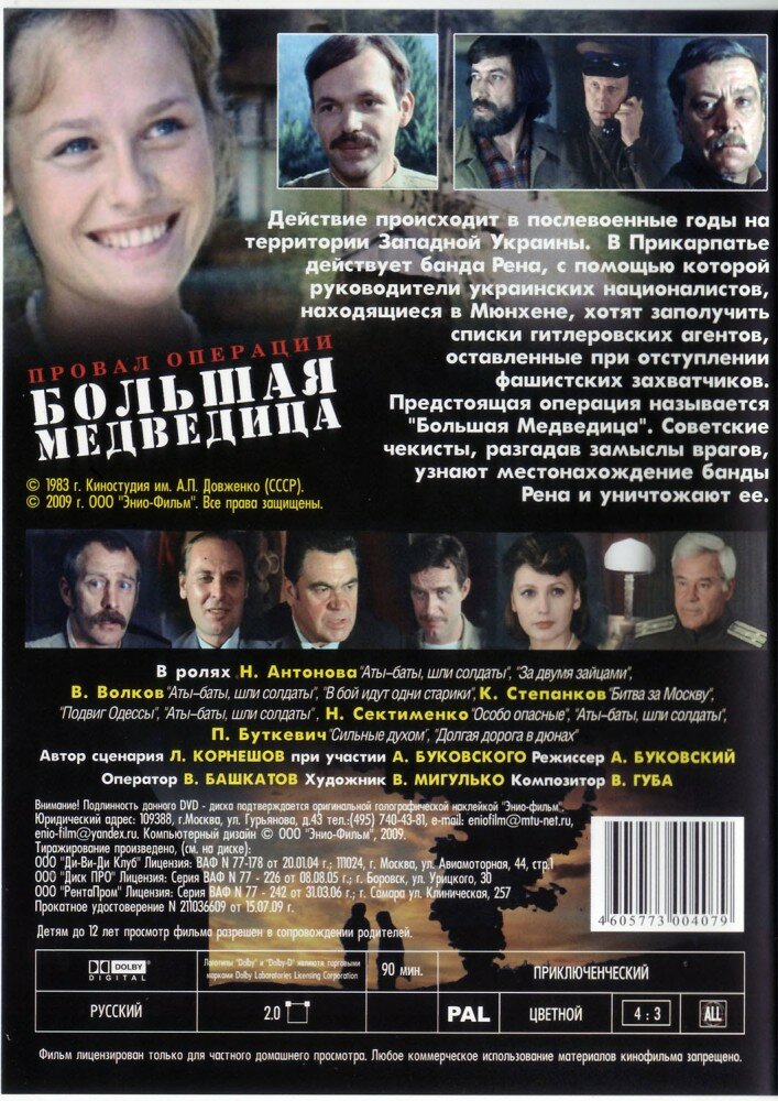 Провал операции "Большая медведица" (DVD) (1983 год, ДВД диск, DVD Box) интересное: