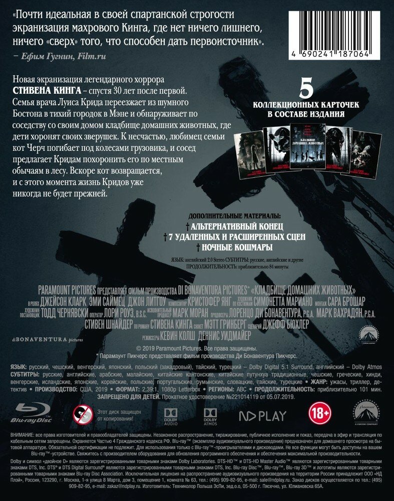 Кладбище домашних животных (2019) (Blu-ray) + 5 карточек интересное: