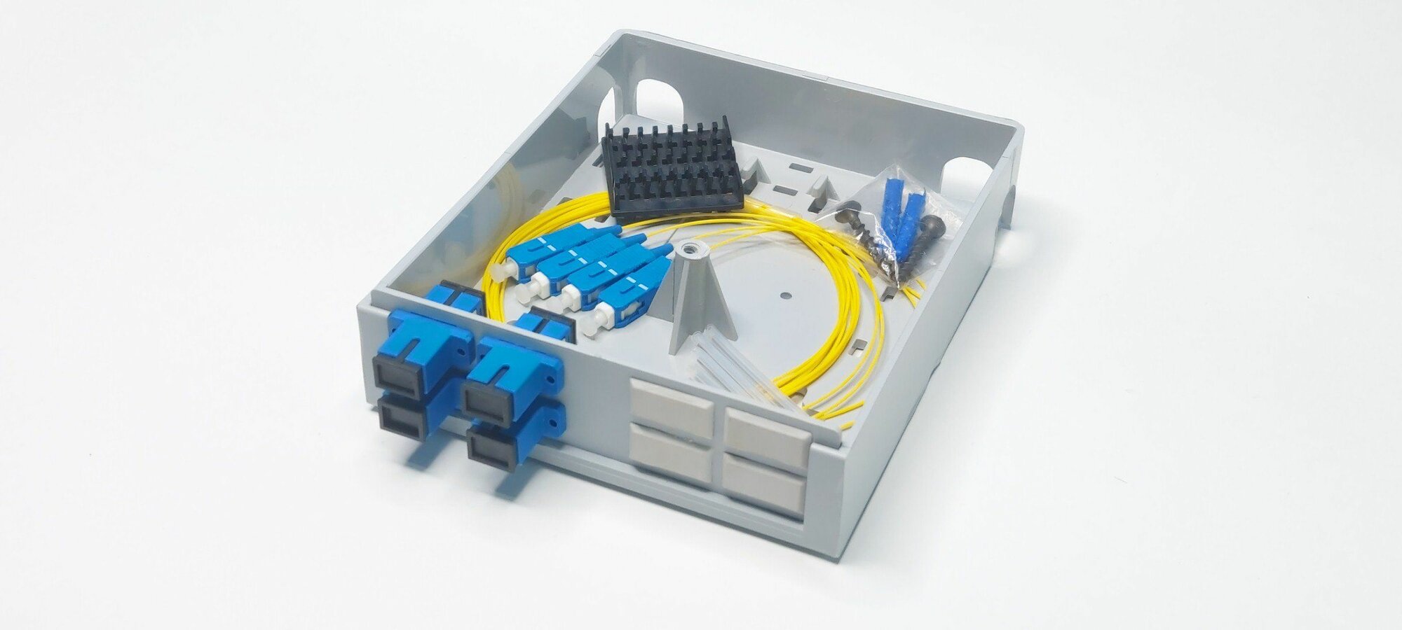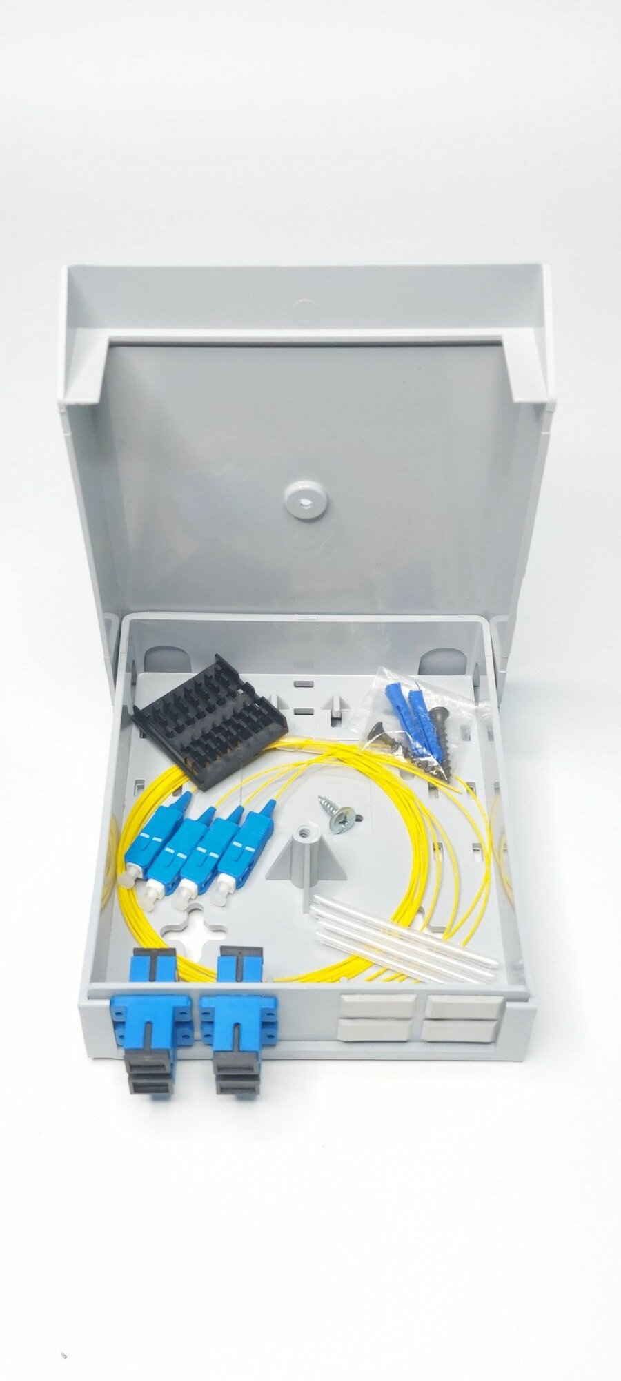 | Комплектация | крн- 1 шт; адаптер SC/SM/APC-4шт, пигтейл SC/APC 9/125 1,5м -4шт, КДЗС-60mm -4шт, держатель КДЗС-1шт, заглушка sc-4шт |