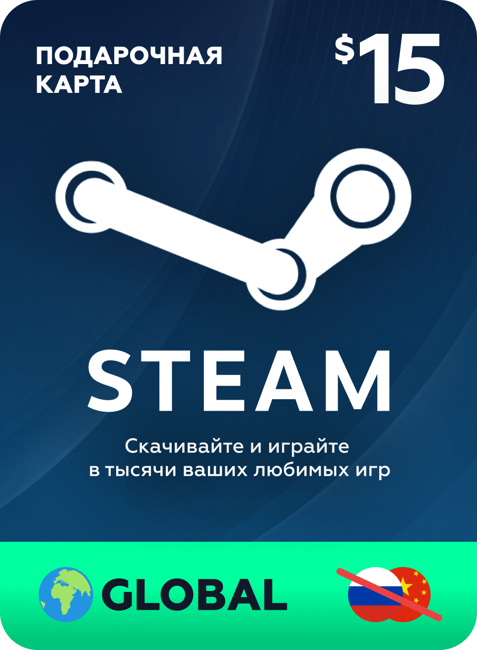 Купить Пополнение кошелька Steam на 15 USD / Gift Card $15 Global (Глобальнй ключ активации) / не подходит для России и Китая