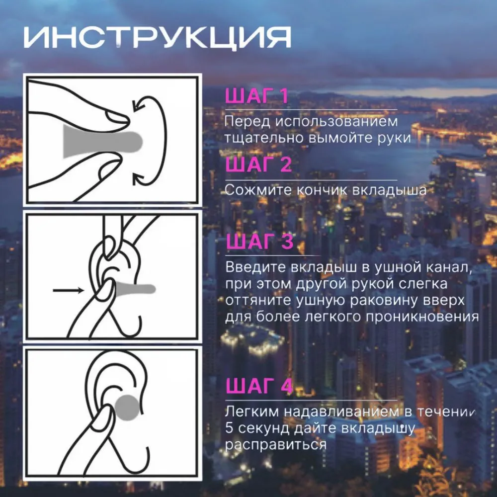 | Комплектация | Коробка с двумя парами затычек для ушей |