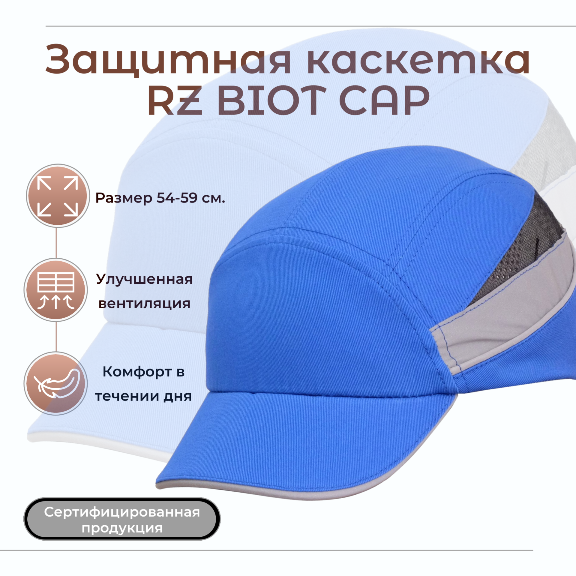 Каскетка защитная росомz RZ BIOT CAP голубая, повышенная вентиляция интересное: