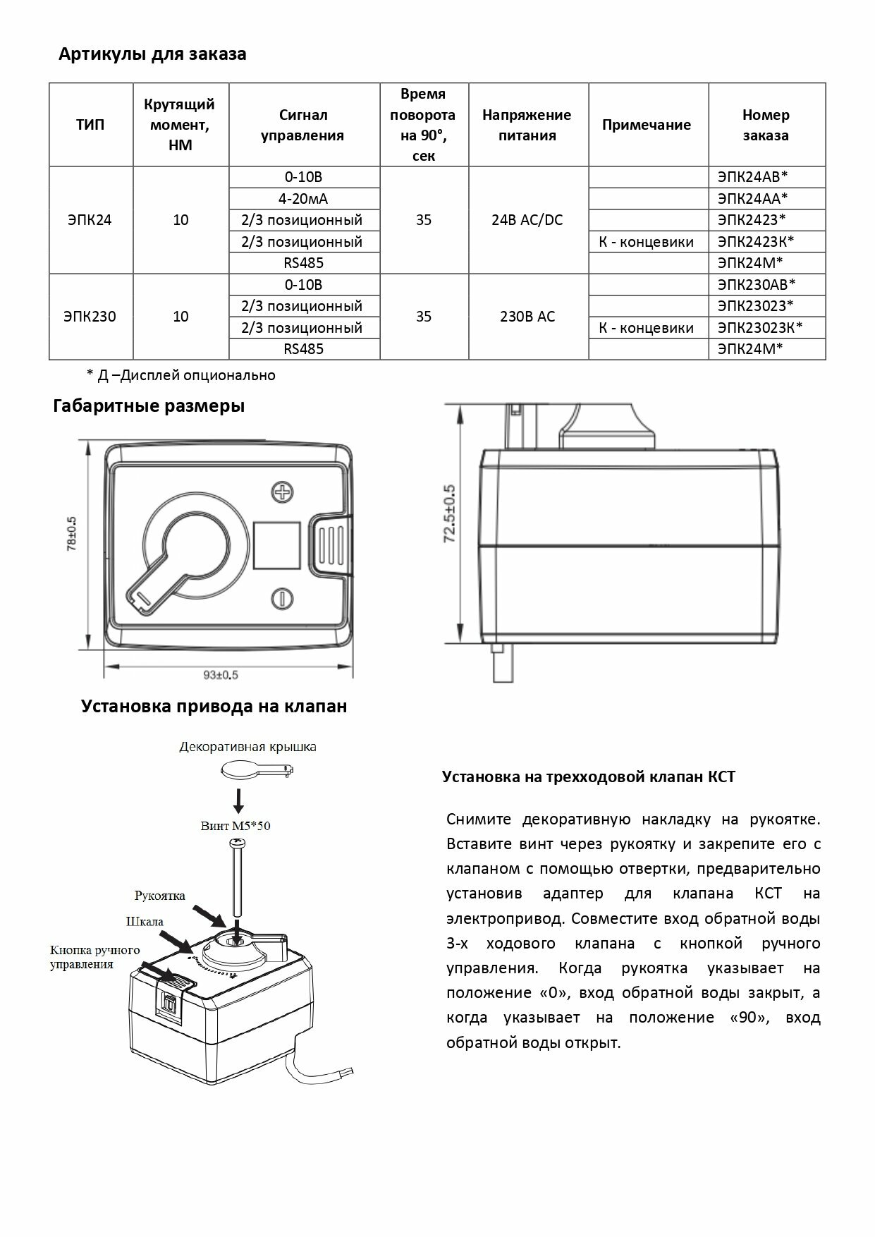 Электропривод, ЭПК2423К*, 24В AC/DC 2/3 позиционное управление + концевые выключатели интересное: