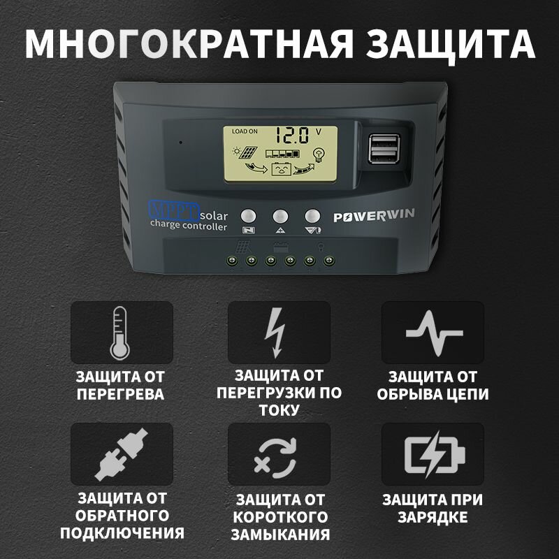 Ниже Вы можете прочитать отзывы на POWERWIN MPPT 12 В 24 В солнечный контроллер авто панель солнечных батарей регулятор зарядного устройства двойной USB ЖК-дисплей, ознакомится с подробными характеристиками, посмотреть интересные обзоры и фотографии на POWERWIN MPPT 12 В 24 В солнечный контроллер авто панель солнечных батарей регулятор зарядного устройства двойной USB ЖК-дисплей.