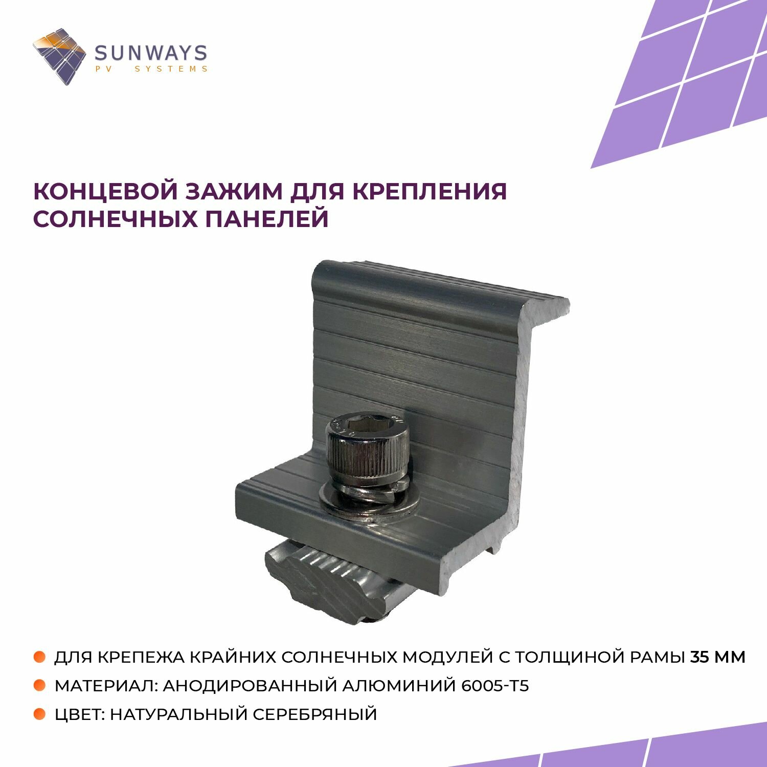 Концевой зажим для крепления солнечных панелей, толщиной 35 мм, Sunways, 1 шт. интересное: