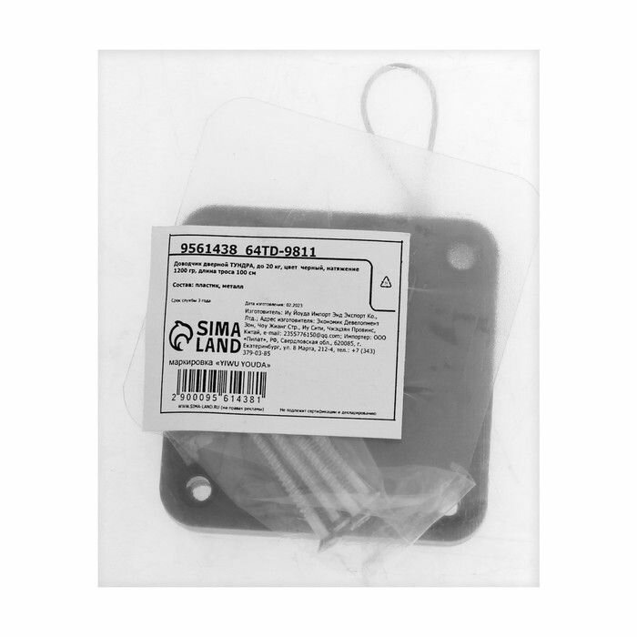 Доводчик дверной, до 20 кг, цвет черный, натяжение 1200 гр, длина троса 100 см интересное: