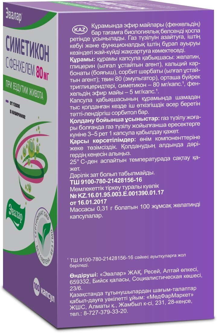 Симетикон с фенхелем, 100 капсул, Эвалар интересное: