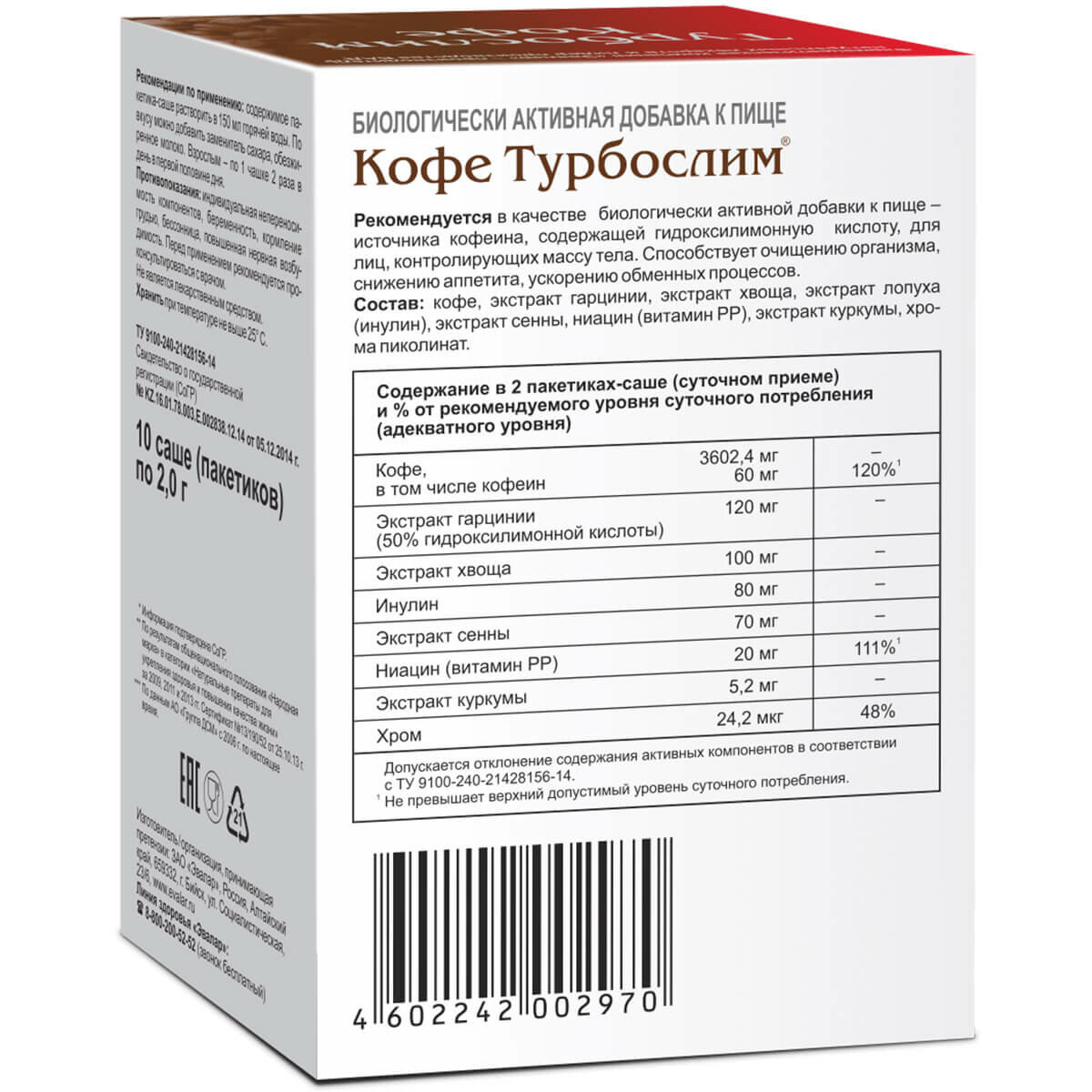 Турбослим кофе, 10 саше по 2 гр, Эвалар интересное: