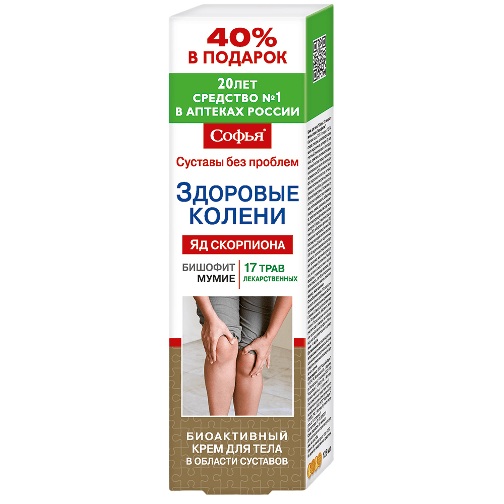 Софья Здоровые колени крем для тела Яд скорпиона 17 лекарственных трав с бишофитом 125 мл 1 шт интересное: