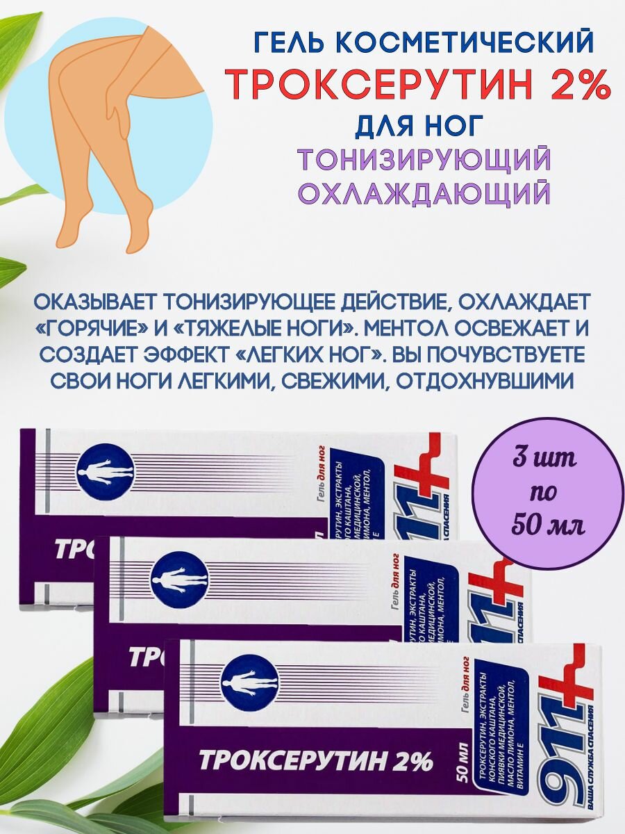 Гель косметический троксерутин 2% для ног 3 штуки по 50мл интересное: