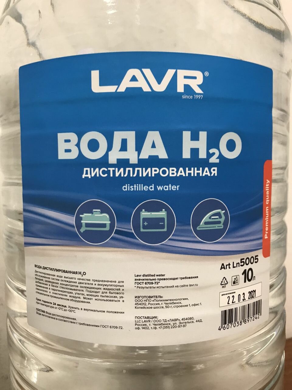 | Дополнительная информация | Вода дистиллированная LAVR 10 л - 1 шт. |