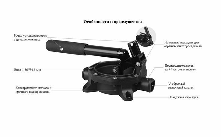 | Подробная комплектация | Помпа ручная для перекачки воды до 45 л/м |