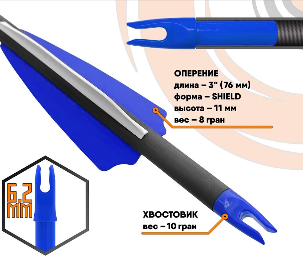 | Подробная комплектация | Стрелы оклеены натуральным оперением и комплектуются наконечником и хвостовиком |