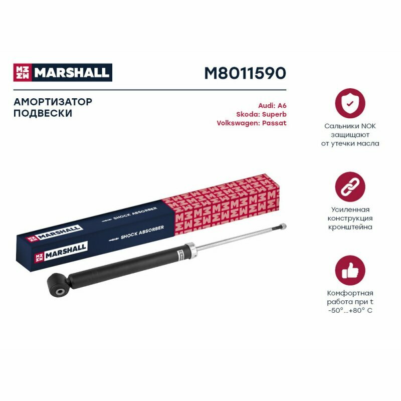 Амортизатор газовый задний MARSHALL M8011590 для Audi A6 97-, Skoda Superb 02-, Volkswagen Passat 97- // кросс-номер KYB 343281