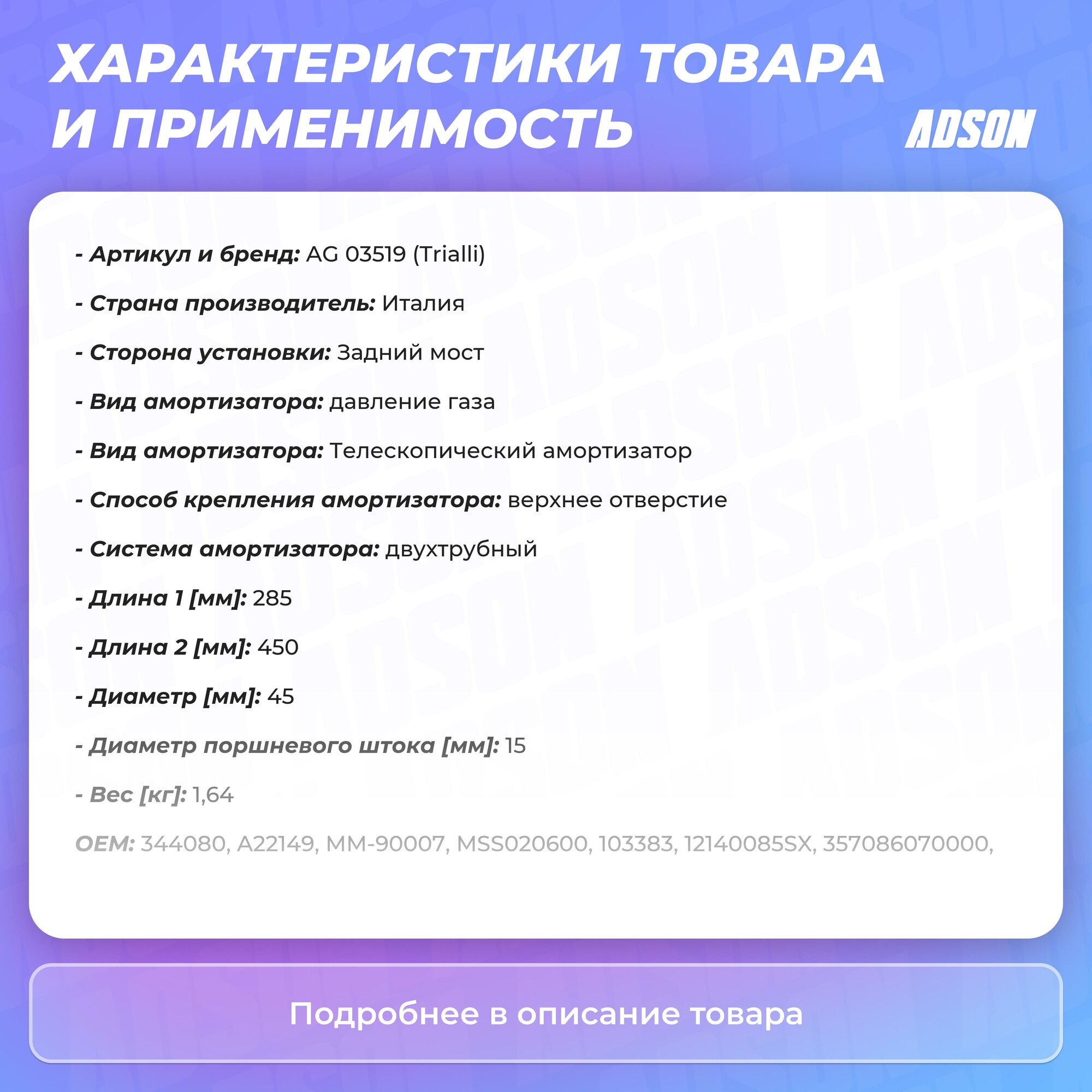 Амортизатор подвески TRIALLI / арт. AG03519 - (1 шт) интересное: