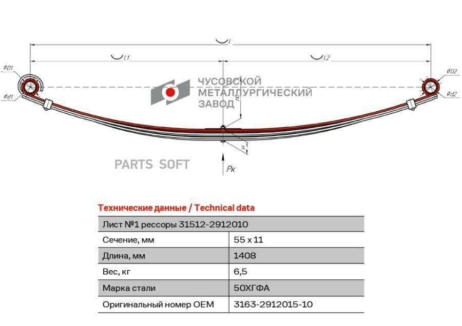 Рессора УАЗ-3163 коренной лист (задняя) №1 с шарнирами "ЧМЗ" L=1408 мм интересное: