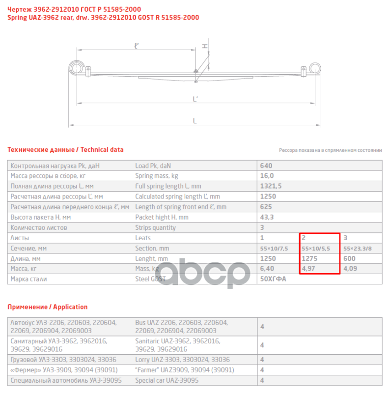 Лист №2 Рессора задняя для УАЗ 2206, 3303, 3909 3 листа интересное: