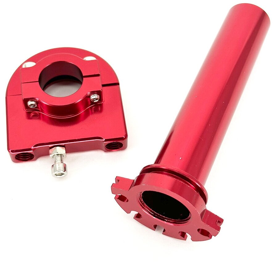 Ручка газа алюминий (красная), комплект из 2х частей для мопеда, скутера, питбайка, мотоцикла.