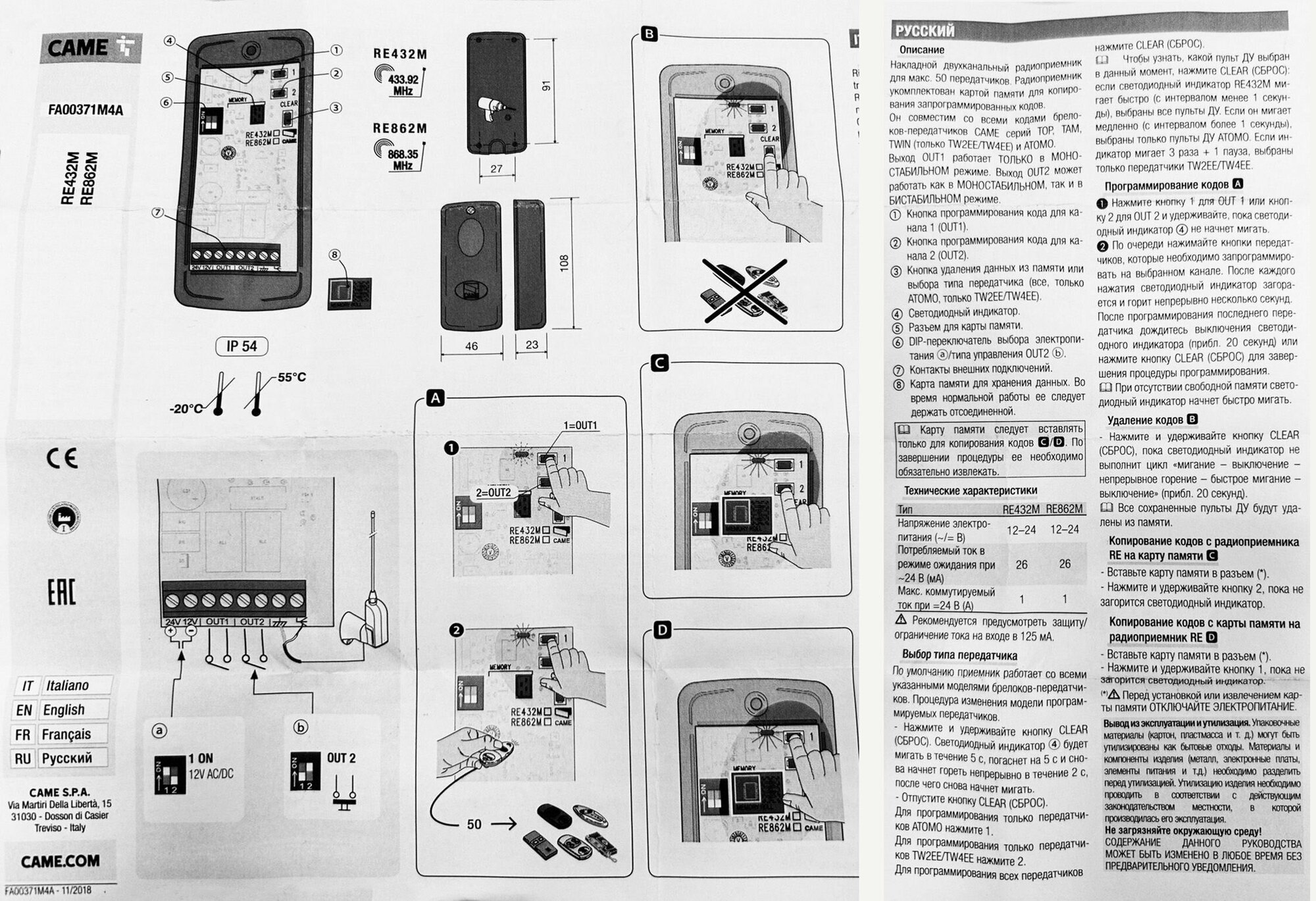 | Подробная комплектация | Радиоприемник CAME RE432M - 1 шт. |