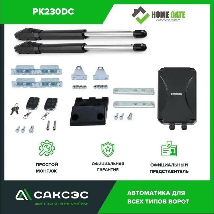 HOME GATE PK230DC Автоматика для распашных ворот комплект: 2 привода, 2 пульта, блок управления, упор интересное: