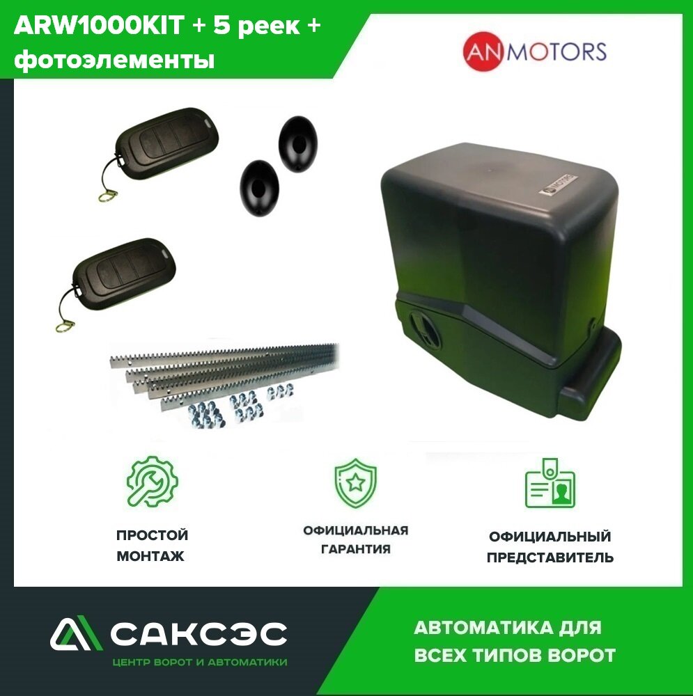 Комплект автоматики откатных ворот An-Motors ARW-1000KIT до 1000 кг. Электропривод + 5 зубчатых реек + фотоэлементы интересное: