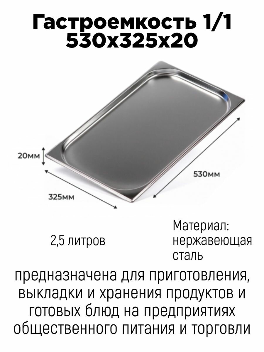 Гастроемкость GN 1/1 из нержавеющей стали 530х325х20 мм интересное: